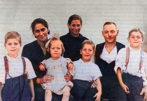 在他祖母位於比拉赫鎮 Niederflachs 的家門前。