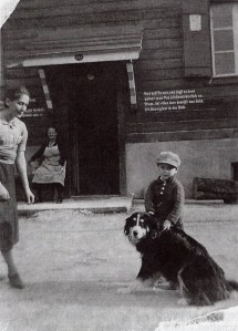 愛德華大約四歲時,與家裡的伯恩山犬(Bernese mountain dog)“Barry”,
