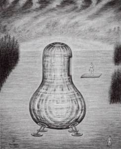 人們在第二次世界大戰所做的一切是如此地原始和恐怖,卻只是讓這架看起來極具未來感的圓盤去做了些微不足道的事情?這對我來說根本是毫無道理的。我當時在胡桃樹下的旁邊就強烈地意識到這片大土地上還有許多人有另外的思考,這根本就是兩個不同的世界在許多事情上彼此碰撞著。我父親那時給我的答覆肯定要有另一番解釋。這不只是因為我當時的想法,而是還有一個原因,因為當時我突然覺得這看見過的圓盤非常熟悉,而且這種想法再也無法擺脫:我肯定處於極度平靜的情況下,在別處看見過類似或相同的圓盤。