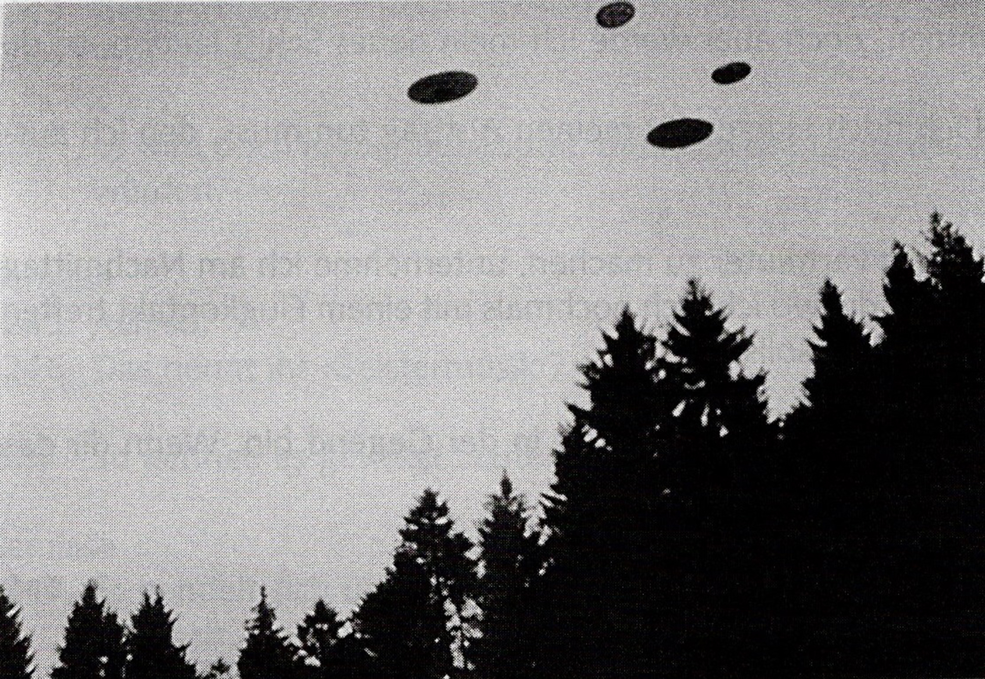 Der am 25. Februar angekündigte Demonstrationsflug mit Semjases neuem Strahlschiff. Nahaufnahme von unten.