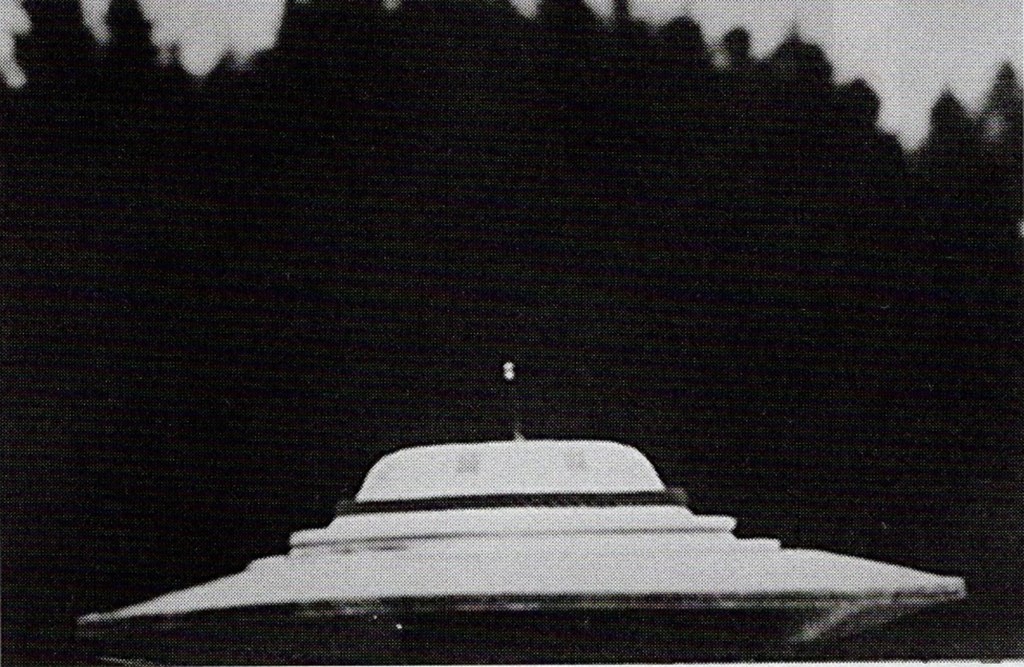 Semjases Strahlschiff zu Demonstrationszwecken gelandet. Der Sucher der Kamera explodierte wegen zu grosser Nähe des Schiffes.