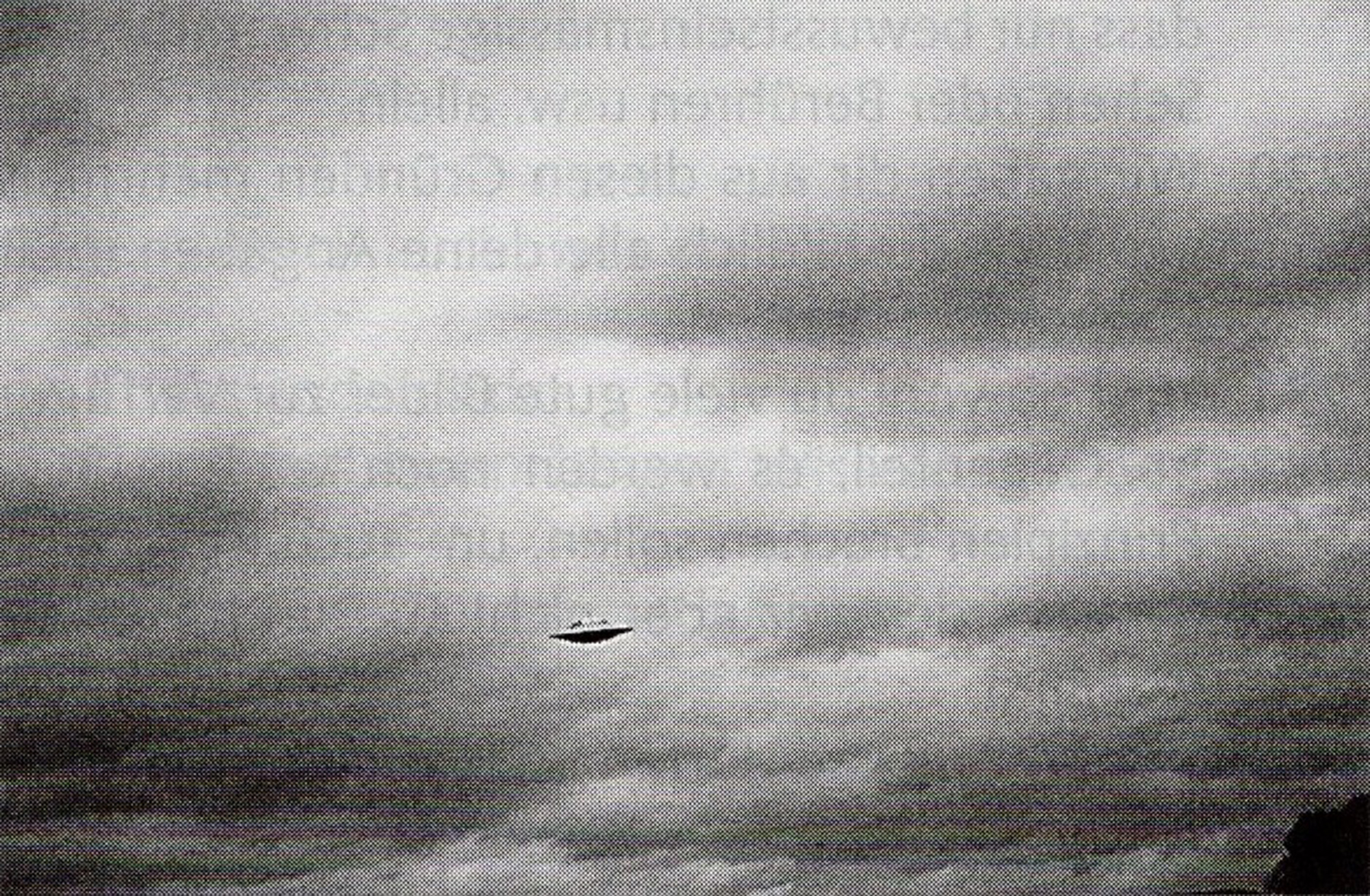 Translator’s Note: This picture does not appear in the German version of the Pleiadian / Plejaren Contact Reports, Vol. 1 but appears on page 105 of Message from the Pleiades, Vol. 1, with the note that it was one of the four ship photos tested exhaustively by Wendelle Stevens’ investigative team.