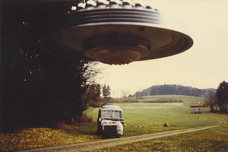 Semjase’s “wedding cake" beamship in a photo demonstration in Säckler of Dürstelen.
