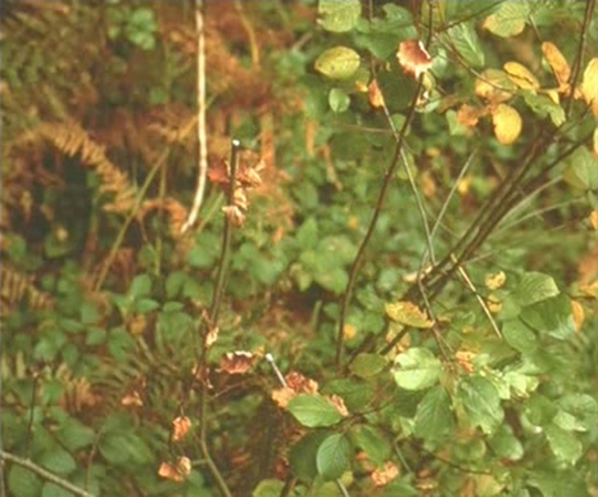 Billy使用(Manara的)镭射枪朝中心附近的一处树林发射了激光束,这是当时在现场留下的另一处灼痕…的局部放大照片。