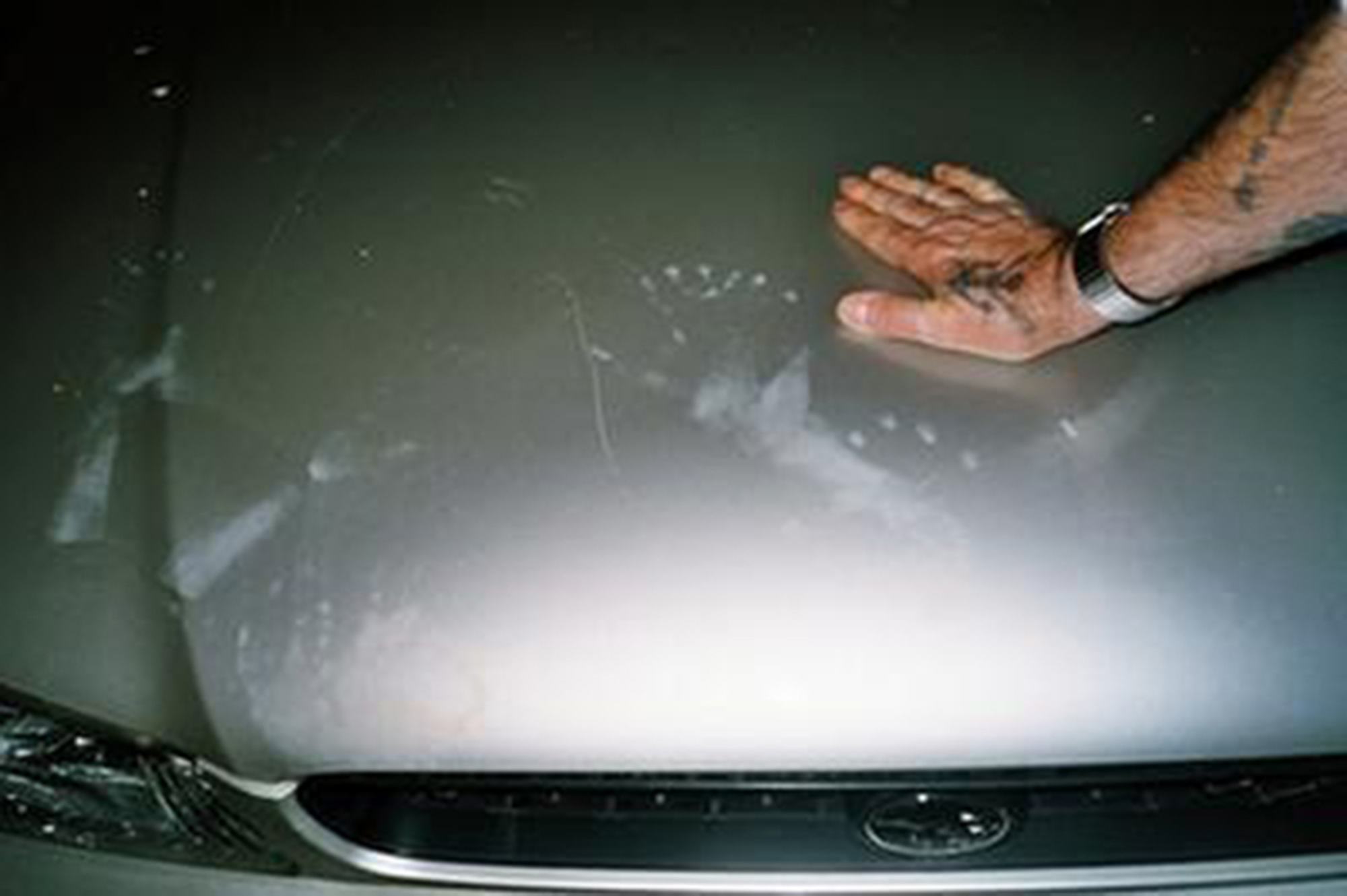 Billy把手放在一枚7指状的手印旁边,该7指手印是一位来自天鹅星系 – Deneb星球的外星女性Asina,留在Billy汽车引擎盖上的。