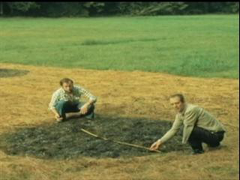 Konrad Schutzbach和Billy正在测量…由Rala和Menara所驾光船留下的…地表痕迹。