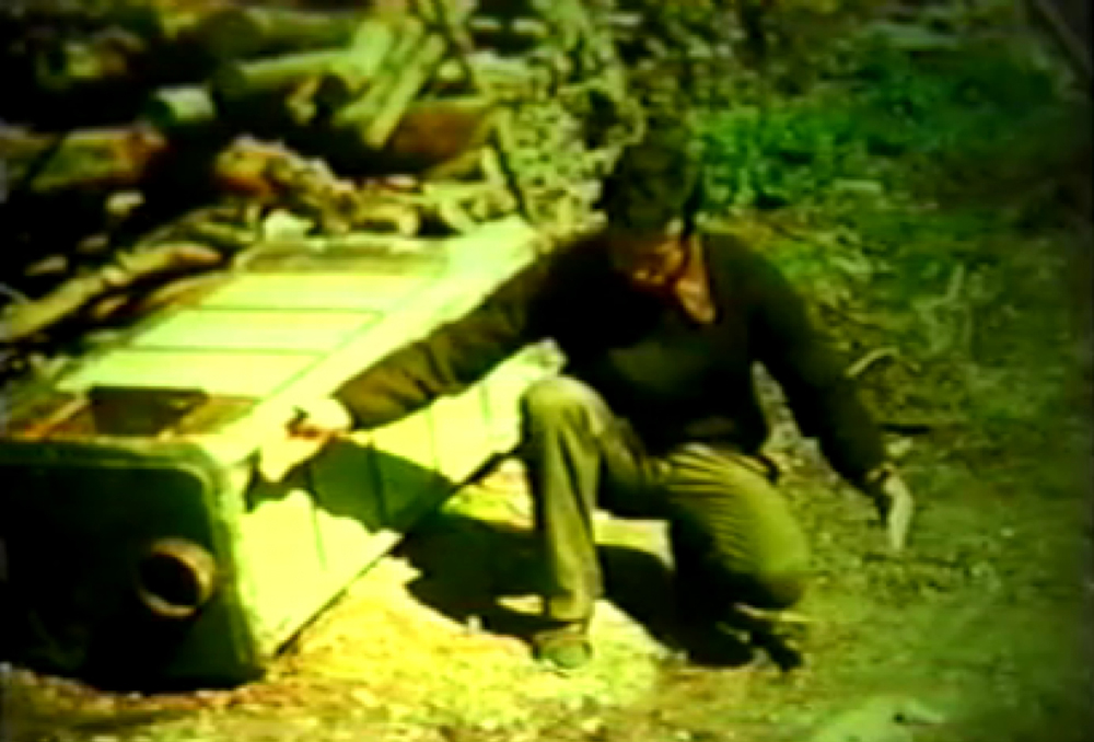 Billy then took out his pistol and shot this stamp, which he hit at 206 meters (about 620 feet) distance, in total darkness.