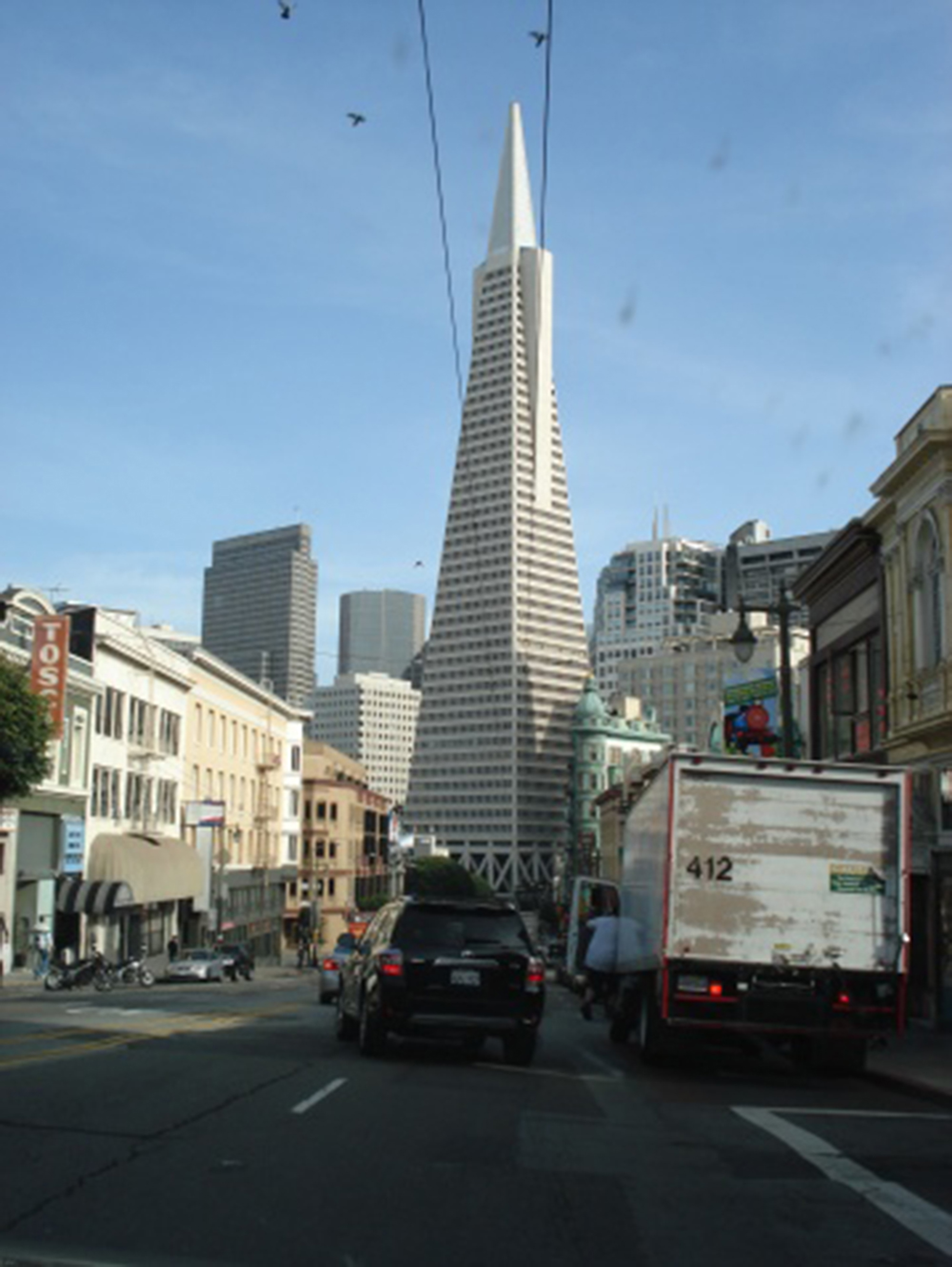 The logic is that the Transamerica building, which was split in half but still standing after the earthquake, would certainly not withstand the havoc that will undoubtedly be unleashed upon San Francisco during WWIII.