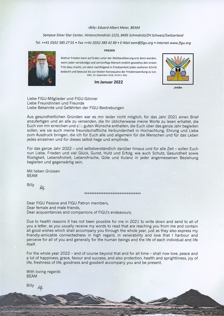 Dear acquaintances and companions of FIGU’s endeavours,